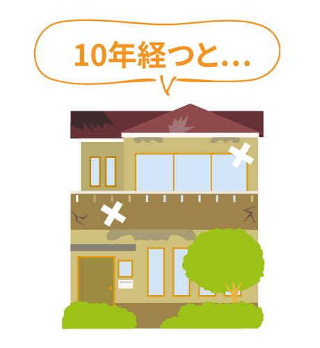 お住まいの外壁塗装は風雨や紫外線の影響で、徐々にその機能を失います。劣化が進むと健在そのものにもダメージを及ぼすため、塗装工事を行うタイミングが非常に重要です。下記に代表的な劣化症状を挙げていますので、ぜひご参考に…早めの対応が、大切なお住まいを長持ちさせることにつながります。